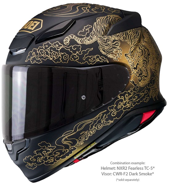 Vizir CWR-F2, na novo razvit za SHOEI NXR2, z dvodimenzionalnim oblikovanjem omogoča zelo naraven vid brez popačenj. Ojačitve na zgornjem in spodnjem robu vizirja povečajo torzijsko togost, mehanizem za zaklepanje, ki je zdaj nameščen na sredini, pa preprečuje nenamerno odpiranje vizirja. Vizir je mogoče zamenjati in prilagoditi hitro in brez orodja zahvaljujoč nadaljnjemu razvitemu mehanizmu predhodnega modela.